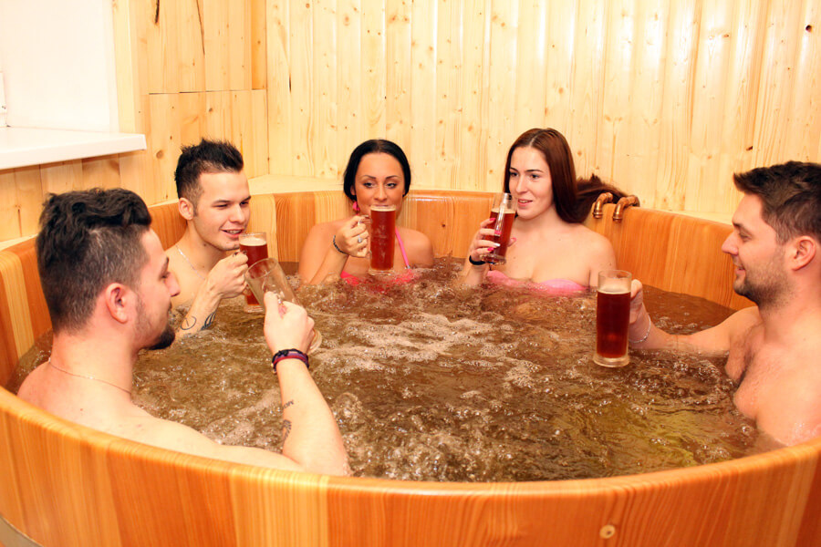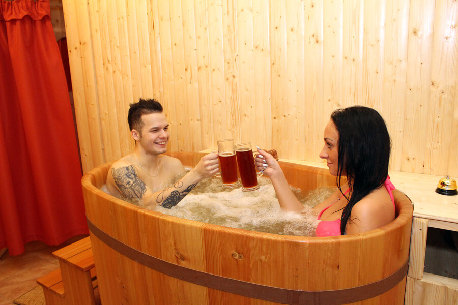 В наши пивные ванны льется темное нефильтрованное и непастеризованное (а это означает: со всеми микроэлементами и витаминами ) «Карловарское пиво Старый град» из собственной пивоварни. Пиво такого качества люди начали варить 12 000 лет назад.