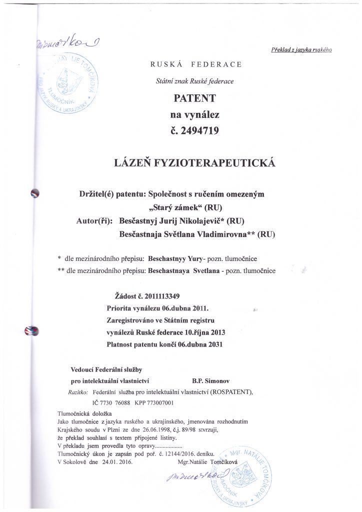 У нас имеется единственный в мире патент на изобретение физиотерапевтической пивной ванны.